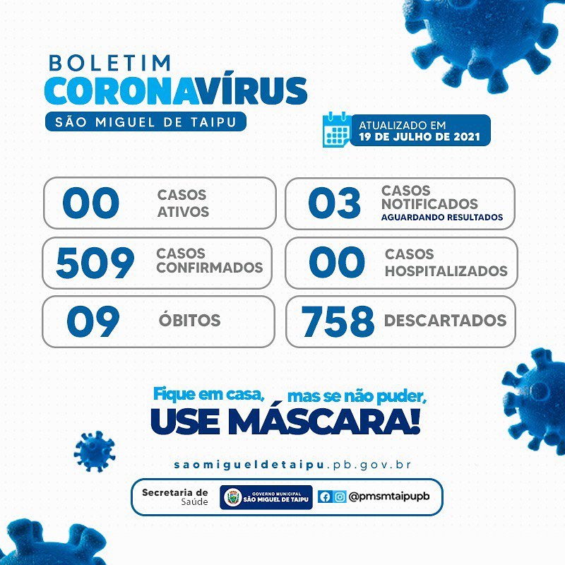 📌Atualização do boletim COVID-19 em 19 de JULHO de 2021.